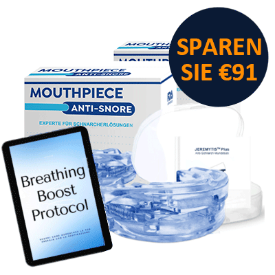 Das JEREMYTIS™ Plus Anti-Schnarch-Mundstück verschiebt Ihren Unterkiefer sanft nach vorne und hält so Ihre Atemwege im Schlaf offen. Dies ermöglicht einen ungehinderten Luftstrom und reduziert effektiv das Schnarchen von der ersten Nacht an.