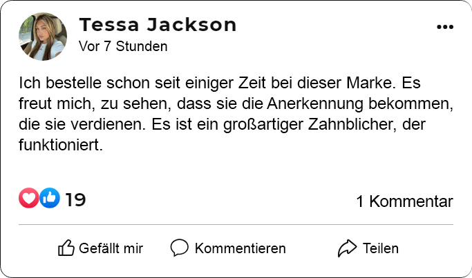 ‎Ich habe Aufhellungsstreifen und Zahnpasta ausprobiert, aber dieses Produkt wirkt sofort. Es ist wie Zähne in Promi-Qualität.